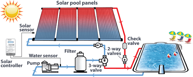 It is really important to have the filter before the Enersol Pool Heaters. Dirty water going through the panels will clog the system.